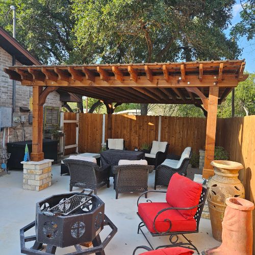 Each kit is handcrafted and available in Western Red Rough Sawn Cedar or #1 (or better) Pressure Treated Southern Yellow Pine. Choose from freestanding or attached designs, standard sizes from 10’x10’ up to 20’x20’, or request a custom pergola size tailored to your space. With premium materials, thoughtful engineering, and easy-to-follow assembly instructions, the Big Kahuna PLUS continues to be a top choice for creating beautiful, functional outdoor living spaces. Made for seasoned DIYers or qualified tradespeople and engineered to handle the elements. Our custom request options offer sizing flexibility in freestanding and attached installation options for popular pergola uses:- Small patios and backyard seating areas