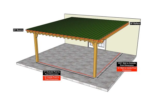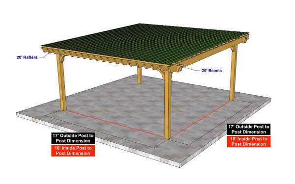 20×20 Big Kahuna PLUS Covered Pergola Kit comes standard with:
