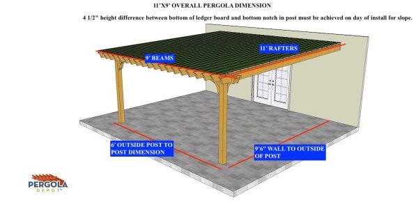 4 1/2″ height difference between bottom of ledger board and bottom notch in post must be achieved on day of install for slope.