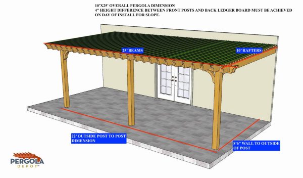 Pergola Depot custom pergola kit. This kit includes standard shipping, installation instructions, and the following pergola components: