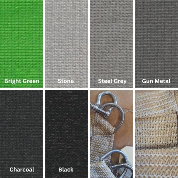 - 4 stainless steel corner attachment hardware: pre-sewn into the sail fabric