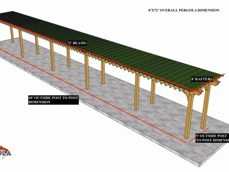 12'X28' OVERALL PERGOLA DIMENSION 9'X25' OUTSIDE POST TO POST DIMENSION Pergola Depot custom pergola kit. This kit includes standard shipping, installation instructions, and the following pergola components: 6x6 posts 2x8 mortised rafters 2x8 double beams 2x2 top slats 2x6 angle braces 2×8 ledger board (for attached pergola kits only) Stainless steel hardware Optional post mounting hardware (ABU66RZ or ABU66Z) Optional post base trim Important notes: - Upon delivery (2) or more adults are required to inspect and unload the kit piece by piece from the back of the truck. This will take approximately 15-30 minutes for kits up to 20x20. DO NOT unload the kit using a forklift. - Pine Kits: Pressure Treated Pine must be assembled first and allowed to dry 3-4 months before staining or painting. DO NOT stain, seal, or paint pressure...
