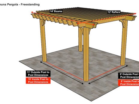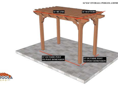 15'X13' OVERALL PERGOLA DIMENSION 12'X10' OUTSIDE POST TO POST DIMENSION Pergola Depot custom pergola kit. This kit includes standard shipping, installation instructions, and the following pergola components: 6x6 posts 2x6 mortised rafters 2x6 double beams 6x6 posts 2x2 top slats 2x6 angle braces 2×6 ledger board (for attached pergola kits only) Stainless steel hardware Optional post mounting hardware (ABU66RZ or ABU66Z) Optional post base trim Important notes: - Upon delivery (2) or more adults are required to inspect and unload the kit piece by piece from the back of the truck. This will take approximately 15-30 minutes for kits up to 20x20. DO NOT unload the kit using a forklift. - Pine Kits: Pressure Treated Pine must be assembled first and allowed to dry 3-4 months before staining or painting. DO NOT stain, seal, or...