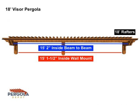 18' OVERALL WIDTH 15’1-1/2″ INSIDE MOUNT TO MOUNT Pergola Depot custom pergola kit. This kit includes standard shipping, installation instructions, and the following pergola components: 2x8 double beams 2x6 rafters 2x2 top slats Stainless steel hardware Sizes up to 16’ include (2) beam assemblies including: 2×8 double beam, 2×6 angle bracket and mounting board. Sizes 16’ and larger include one additional beam assembly that can be installed if desired. The additional beam assembly includes: 2×6 double beam, 2×6 angle bracket and mounting board. Important notes: - Upon delivery (2) or more adults are required to inspect and unload the kit piece by piece from the back of the truck. This will take approximately 15-30 minutes for kits up to 20x20. DO NOT unload the kit using a forklift. - Pine Kits: Pressure Treated Pine must...