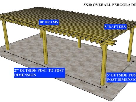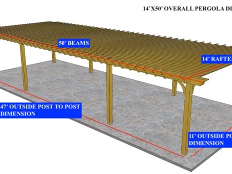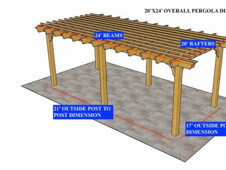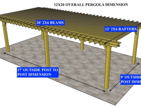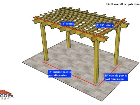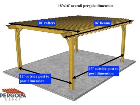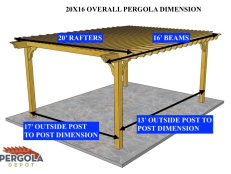 20'X16' OVERALL PERGOLA DIMENSION 17'X13' OUTSIDE POST TO POST DIMENSION Pergola Depot custom pergola kit. This kit includes standard shipping, installation instructions, and the following pergola components: 6x6 posts 2x8 mortised rafters 2x8 double beams 6x6 posts 2x2 top slats 2x6 angle braces 2×8 ledger board (for attached pergola kits only) Stainless steel hardware Optional post mounting hardware (ABU66RZ or ABU66Z) Optional post base trim Important notes: - Upon delivery (2) or more adults are required to inspect and unload the kit piece by piece from the back of the truck. This will take approximately 15-30 minutes for kits up to 20x20. DO NOT unload the kit using a forklift. - Pine Kits: Pressure Treated Pine must be assembled first and allowed to dry 3-4 months before staining or painting. DO NOT stain, seal, or...