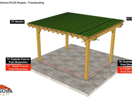 14'X9' OVERALL PERGOLA DIMENSION 11'X6' OUTSIDE POST TO POST DIMENSION Pergola Depot custom pergola kit. This kit includes standard shipping, installation instructions, and the following pergola components: 6×6 posts (with tenon cut at top for beam connection) 4×6 notched rafters (on appx. 24” centers) 6×6 single beams (with mortise cut for post connection) 2×4 top slats (on appx. 12” centers) 4×6 angle braces (2 per post) Stainless steel hardware Optional galvanized post mounting hardware Personalized technical assistance with sizing, product selection Note: Installation requires customer (or representative) perform more advanced tasks Important notes: - Upon delivery (2) or more adults are required to inspect and unload the kit piece by piece from the back of the truck. This will take approximately 15-30 minutes for kits up to 20x20. DO NOT unload the kit using...