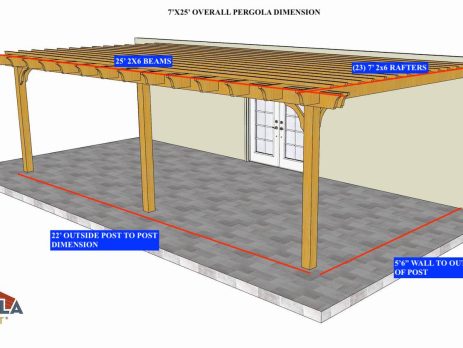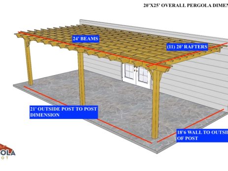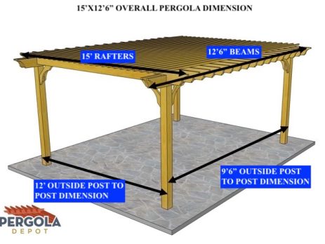 15'X12'6" OVERALL PERGOLA DIMENSION 12'X9'6"' OUTSIDE POST TO POST DIMENSION Pergola Depot custom pergola kit. This kit includes standard shipping, installation instructions, and the following pergola components: 6x6 posts 2x8 mortised rafters 2x8 double beams 6x6 posts 2x2 top slats 2x6 angle braces 2×8 ledger board (for attached pergola kits only) Stainless steel hardware Optional post mounting hardware (ABU66RZ or ABU66Z) Optional post base trim Important notes: - Upon delivery (2) or more adults are required to inspect and unload the kit piece by piece from the back of the truck. This will take approximately 15-30 minutes for kits up to 20x20. DO NOT unload the kit using a forklift. - Pine Kits: Pressure Treated Pine must be assembled first and allowed to dry 3-4 months before staining or painting. DO NOT stain, seal, or...