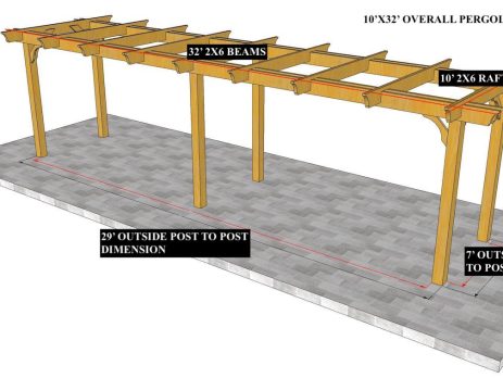12'X22' OVERALL PERGOLA DIMENSION 10'6"X19' OUTSIDE POST TO POST DIMENSION Pergola Depot custom pergola kit. This kit includes standard shipping, installation instructions, and the following pergola components: 2×8 double beams 2×8 mortised rafters 6×6 posts 2x6 angle braces 2x2 top slats Stainless steel hardware Optional galvanized post mounting hardware (ABU66RZ or ABU66Z) Important notes: - Upon delivery (2) or more adults are required to inspect and unload the kit piece by piece from the back of the truck. This will take approximately 15-30 minutes for kits up to 20x20. DO NOT unload the kit using a forklift. - Pine Kits: Pressure Treated Pine must be assembled first and allowed to dry 3-4 months before staining or painting. DO NOT stain, seal, or paint pressure treated pine before the lumber has dried. For best results, we...