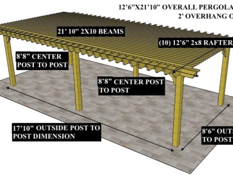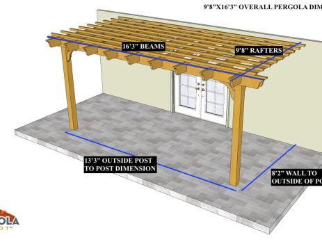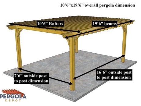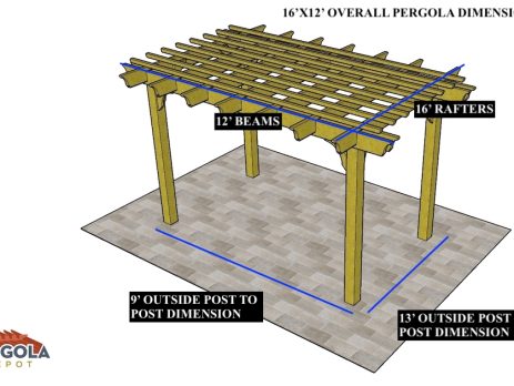 16'X12' OVERALL PERGOLA DIMENSION 13'X9' OUTSIDE POST TO POST DIMENSION Pergola Depot custom pergola kit. This kit includes standard shipping, installation instructions, and the following pergola components: 6x6 posts 2x8 mortised rafters 2x8 double beams 2x2 top slats 2x6 angle braces 2×8 ledger board (for attached pergola kits only) Stainless steel hardware Optional post mounting hardware (ABU66RZ or ABU66Z) Optional post base trim Important notes: - Upon delivery (2) or more adults are required to inspect and unload the kit piece by piece from the back of the truck. This will take approximately 15-30 minutes for kits up to 20x20. DO NOT unload the kit using a forklift. - Pine Kits: Pressure Treated Pine must be assembled first and allowed to dry 3-4 months before staining or painting. DO NOT stain, seal, or paint pressure...