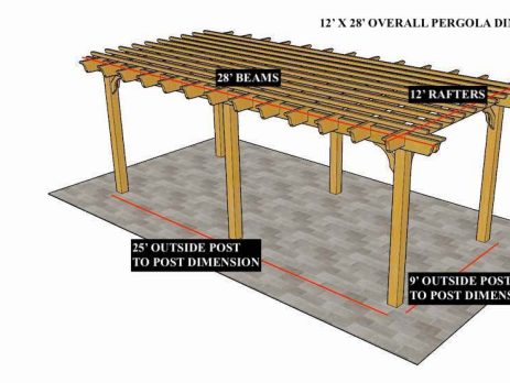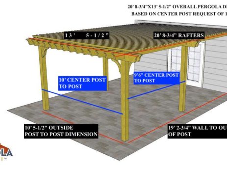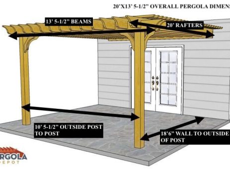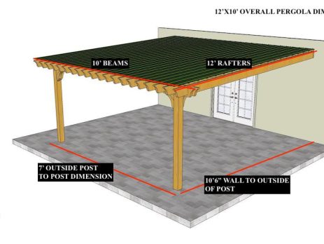 12'X10' OVERALL PERGOLA DIMENSION 10'6"X 7' OUTSIDE POST TO POST DIMENSION 5" height difference between bottom of ledger board and bottom notch in posts must be achieved on day of install for the slope. Pergola Depot custom pergola kit. This kit includes standard shipping, installation instructions, and the following pergola components: 2×8 double beams 2×8 mortised rafters 6×6 posts 4x6 angle braces 2x2 top slats Stainless steel hardware Optional galvanized post mounting hardware (ABU66RZ or ABU66Z) Optional MasterRib Metal Roofing Panels and Hardware (view all color choices here) NOTE: Installation requires customer (or representative) perform more advanced tasks Important notes: - Upon delivery (2) or more adults are required to inspect and unload the kit piece by piece from the back of the truck. This will take approximately 15-30 minutes for kits...