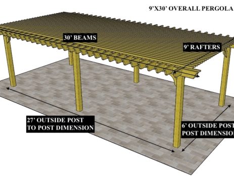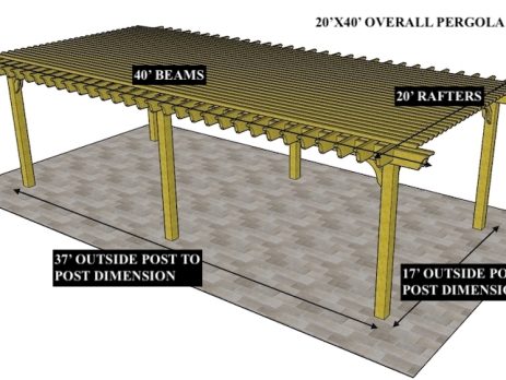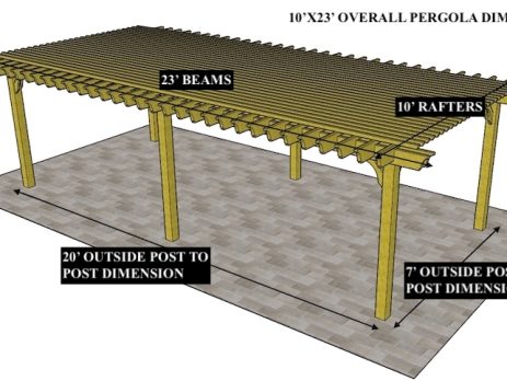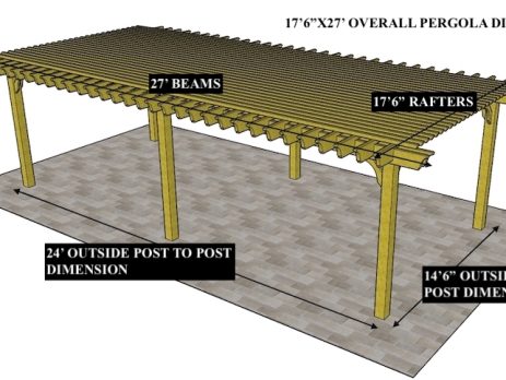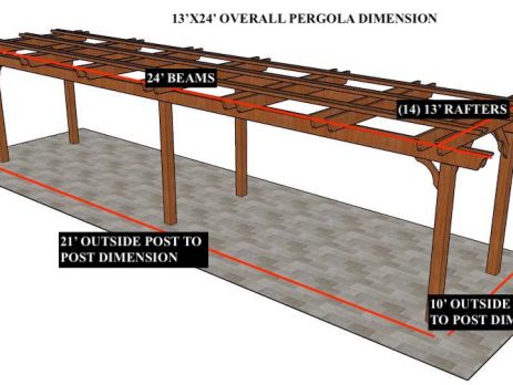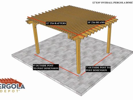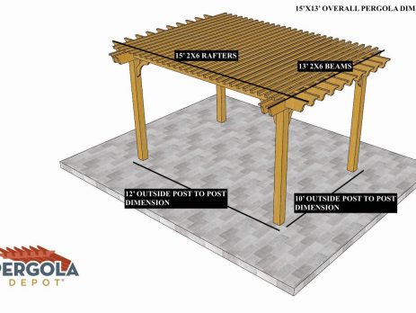 15'X13' OVERALL PERGOLA DIMENSION 12'X10' OUTSIDE POST TO POST DIMENSION Pergola Depot custom pergola kit. This kit includes standard shipping, installation instructions, and the following pergola components: 6x6 posts 2x6 mortised rafters 2x6 double beams 6x6 posts 2x2 top slats 2x6 angle braces 2×6 ledger board (for attached pergola kits only) Stainless steel hardware Optional post mounting hardware (ABU66RZ or ABU66Z) Optional post base trim Important notes: - Upon delivery (2) or more adults are required to inspect and unload the kit piece by piece from the back of the truck. This will take approximately 15-30 minutes for kits up to 20x20. DO NOT unload the kit using a forklift. - Pine Kits: Pressure Treated Pine must be assembled first and allowed to dry 3-4 months before staining or painting. DO NOT stain, seal, or...