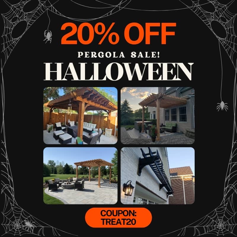 Coupon code is valid on all pergola kit styles in standard sizes. Custom sizes will have discount applied to quote. Pricing includes shipping within the lower 48 United States.